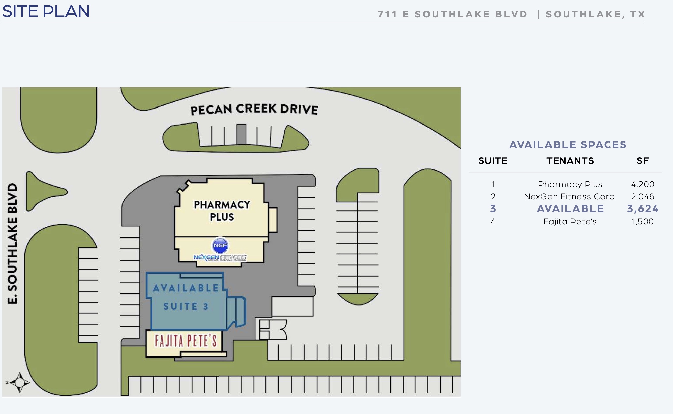 Serving the affluent Southlake community, Pecan Creek is home to tenants providing critical daily essentials.